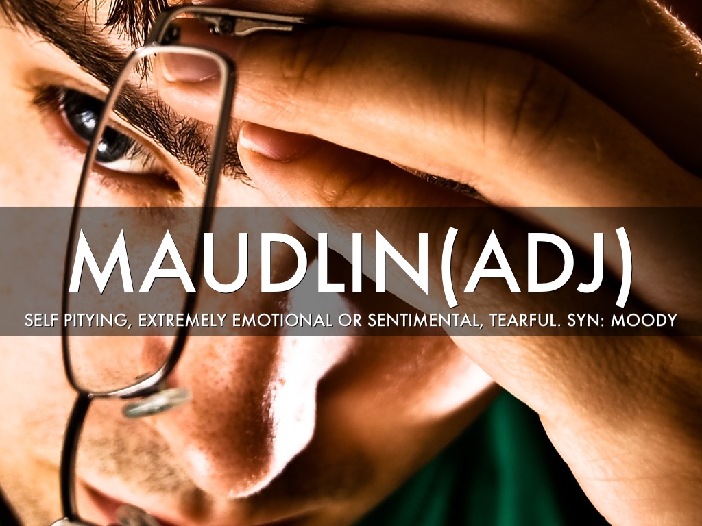 SELF PITYING, EXTREMELY EMOTIONAL OR SENTIMENTAL, TEARFUL. SYN: MOODY