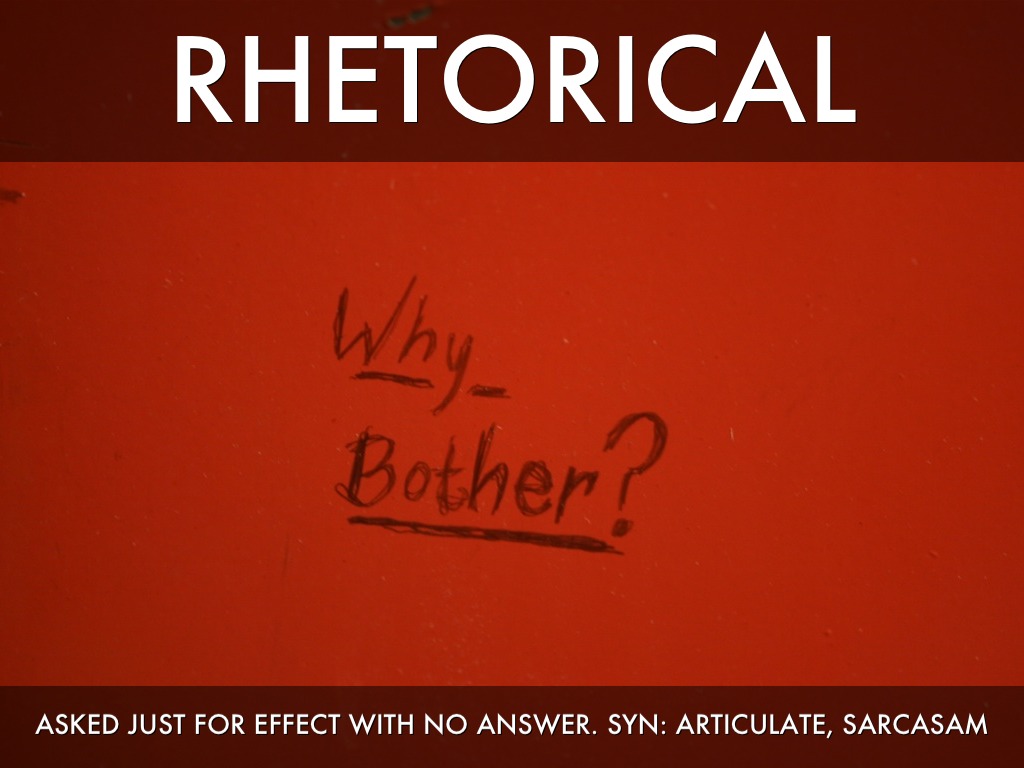 ASKED JUST FOR EFFECT WITH NO ANSWER. SYN: ARTICULATE, SARCASAM