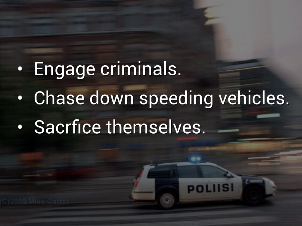 Police officers have one of the most dangerous jobs and one of the most respected. Day in and day out, they are expected to engage criminals who are armed, chase down speeding vehicles and sacrifice themselves in order to stop a crime. In 2004, 154 officers lost their lives protecting citizens. Police officers are counted on to respond to crimes, and people expect them to be there to protect them.