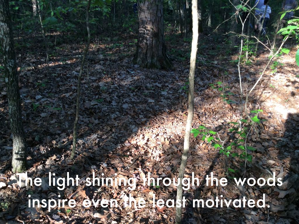 The light shining through the woods inspire even the least motivated.