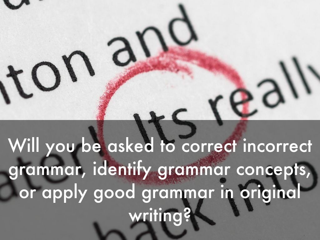 Will you be asked to correct incorrect grammar, identify grammar concepts, or apply good grammar in original writing?