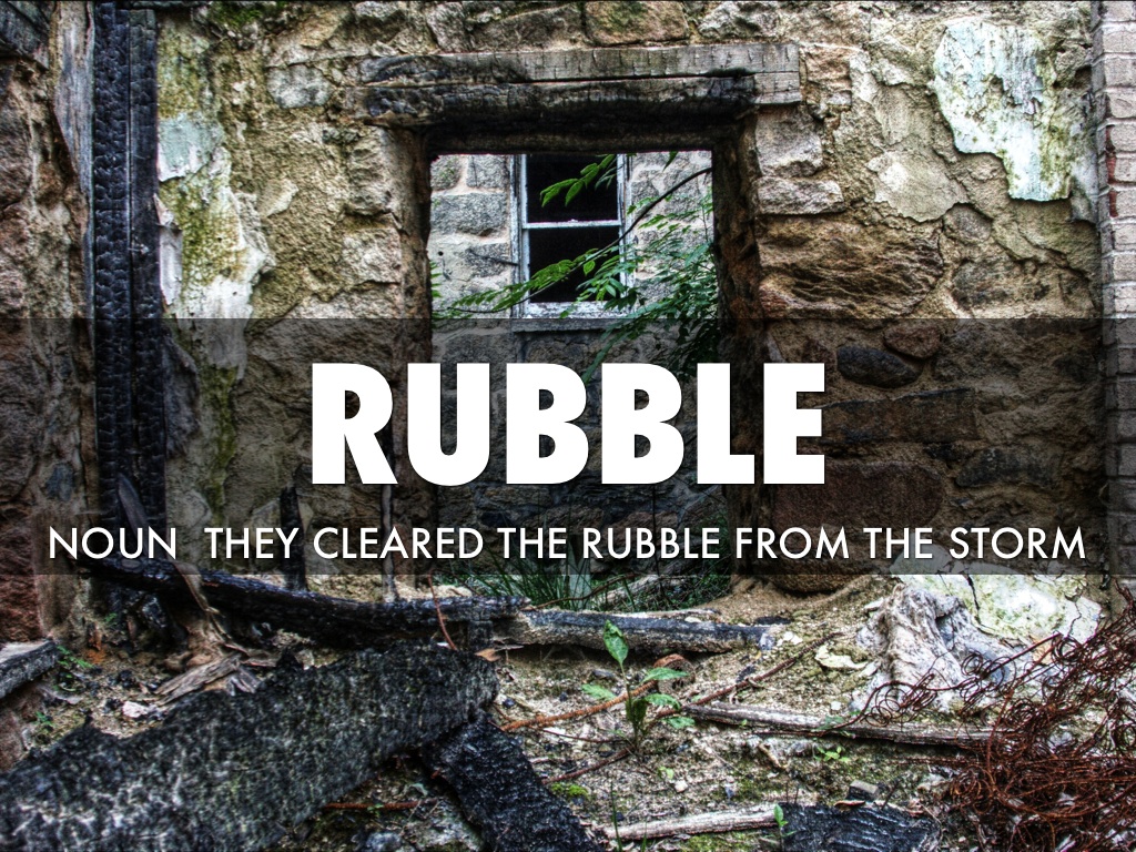 NOUN THEY CLEARED THE RUBBLE FROM THE STORM