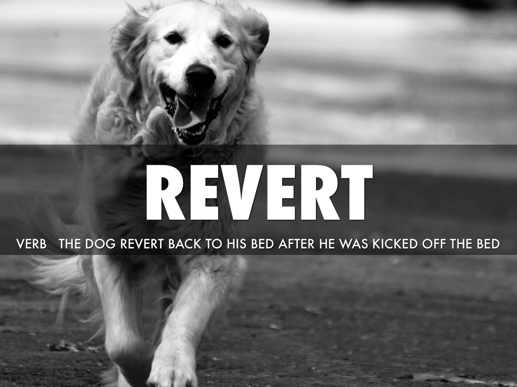 VERB THE DOG REVERT BACK TO HIS BED AFTER HE WAS KICKED OFF THE BED