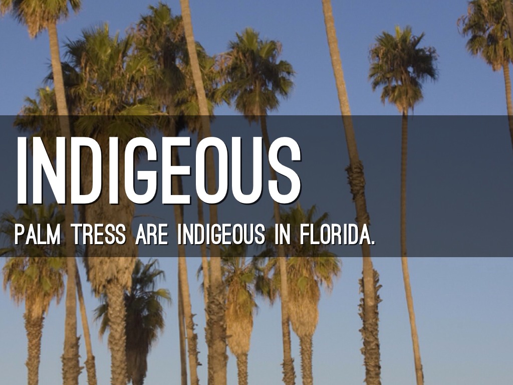 PALM TRESS ARE INDIGEOUS IN FLORIDA.