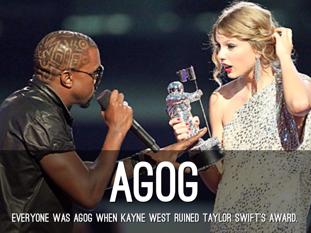 EVERYONE WAS AGOG WHEN KAYNE WEST RUINED TAYLOR SWIFT'S AWARD.