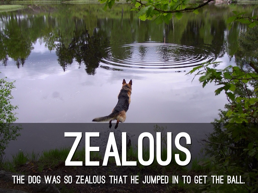 THE DOG WAS SO ZEALOUS THAT HE JUMPED IN TO GET THE BALL.