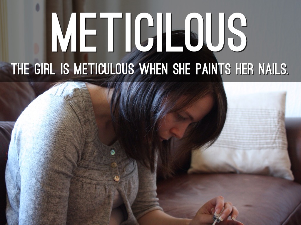THE GIRL IS METICULOUS WHEN SHE PAINTS HER NAILS.