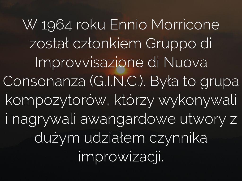 W 1964 roku Ennio Morricone został członkiem Gruppo di Improvvisazione di Nuova Consonanza (G.I.N.C.). Była to grupa kompozytorów, którzy wykonywali i nagrywali awangardowe utwory z dużym udziałem czynnika improwizacji.