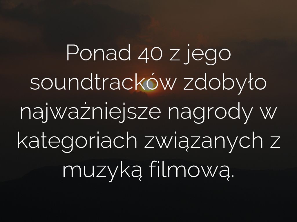 Ponad 40 z jego soundtracków zdobyło najważniejsze nagrody w kategoriach związanych z muzyką filmową.