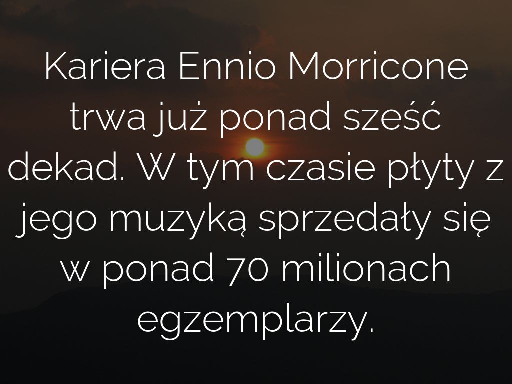 Kariera Ennio Morricone trwa już ponad sześć dekad. W tym czasie płyty z jego muzyką sprzedały się w ponad 70 milionach egzemplarzy.