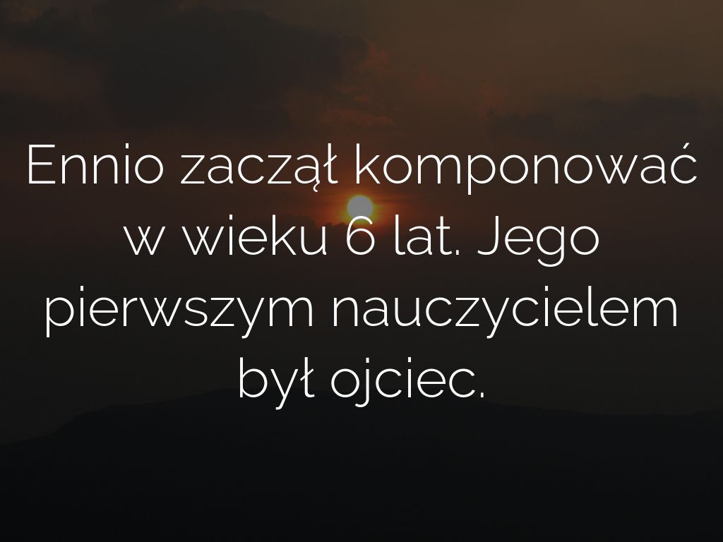 Ennio zaczął komponować w wieku 6 lat. Jego pierwszym nauczycielem był ojciec.