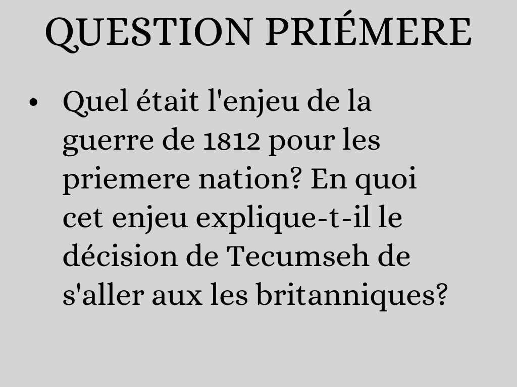 Quel était l'enjeu de la guerre de 1812 pour les priemere nation? En quoi cet enjeu explique-t-il le décision de Tecumseh de s'aller aux les britanniques?