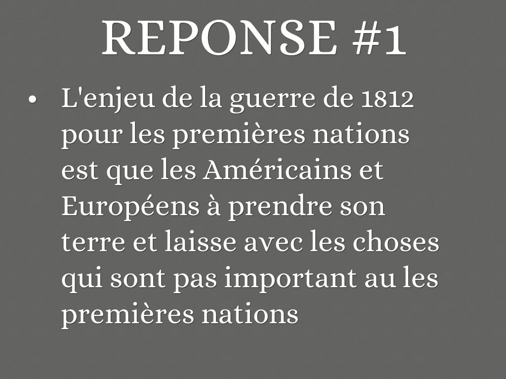 L'enjeu de la guerre de 1812 pour les premières nations est que les Américains et Européens à prendre son terre et laisse avec les choses qui sont pas important au les premières nations