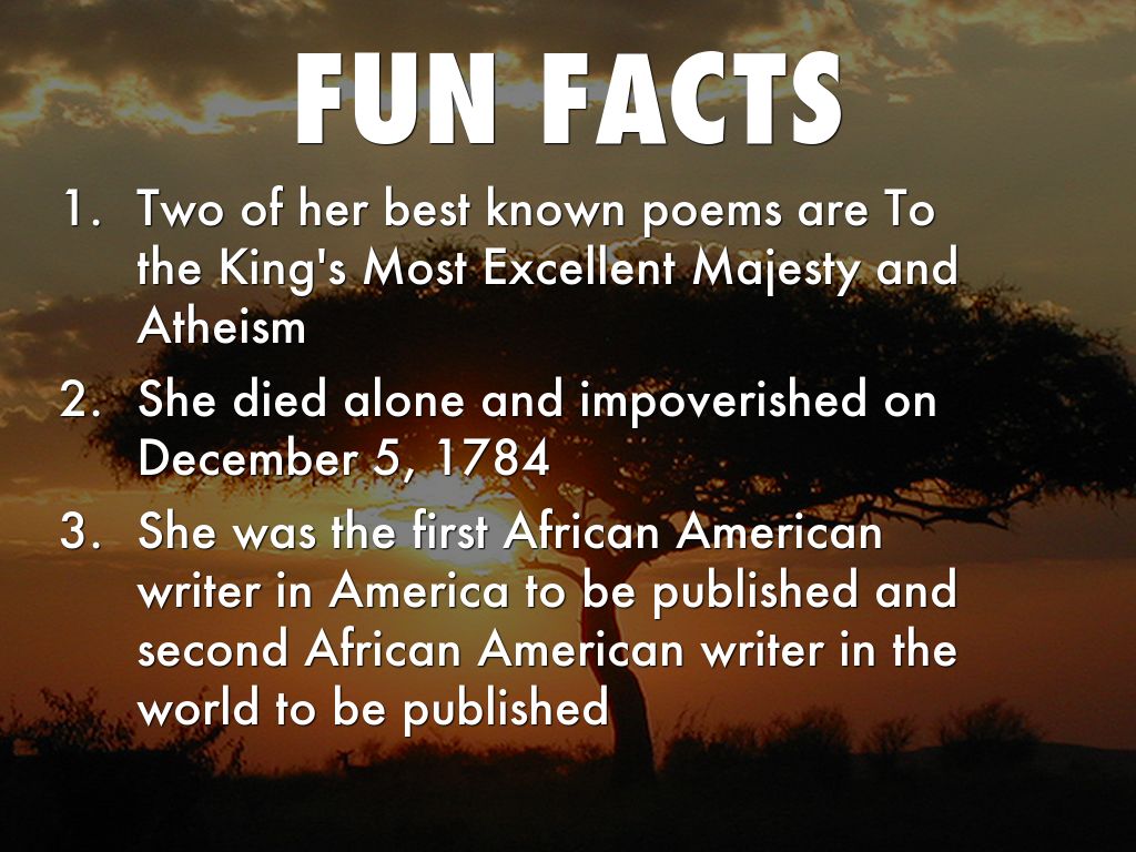 • She was the first African American writer in America to be published and second African American writer in the world to be published