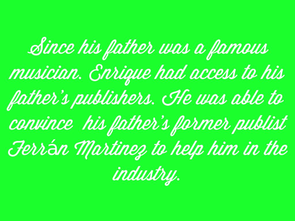 Since his father was a famous musician. Enrique had access to his father's publishers. He was able to convince his father's former publist Ferrán Martinez to help him in the industry.