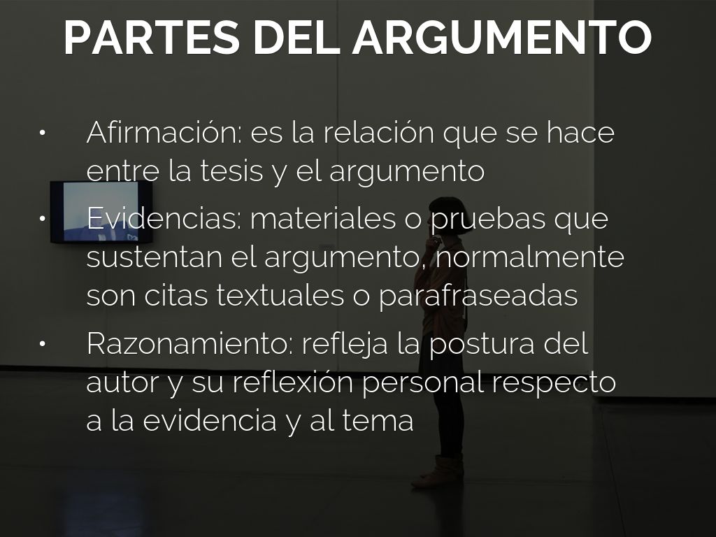 Evidencias: materiales o pruebas que sustentan el argumento, normalmente son citas textuales o parafraseadas