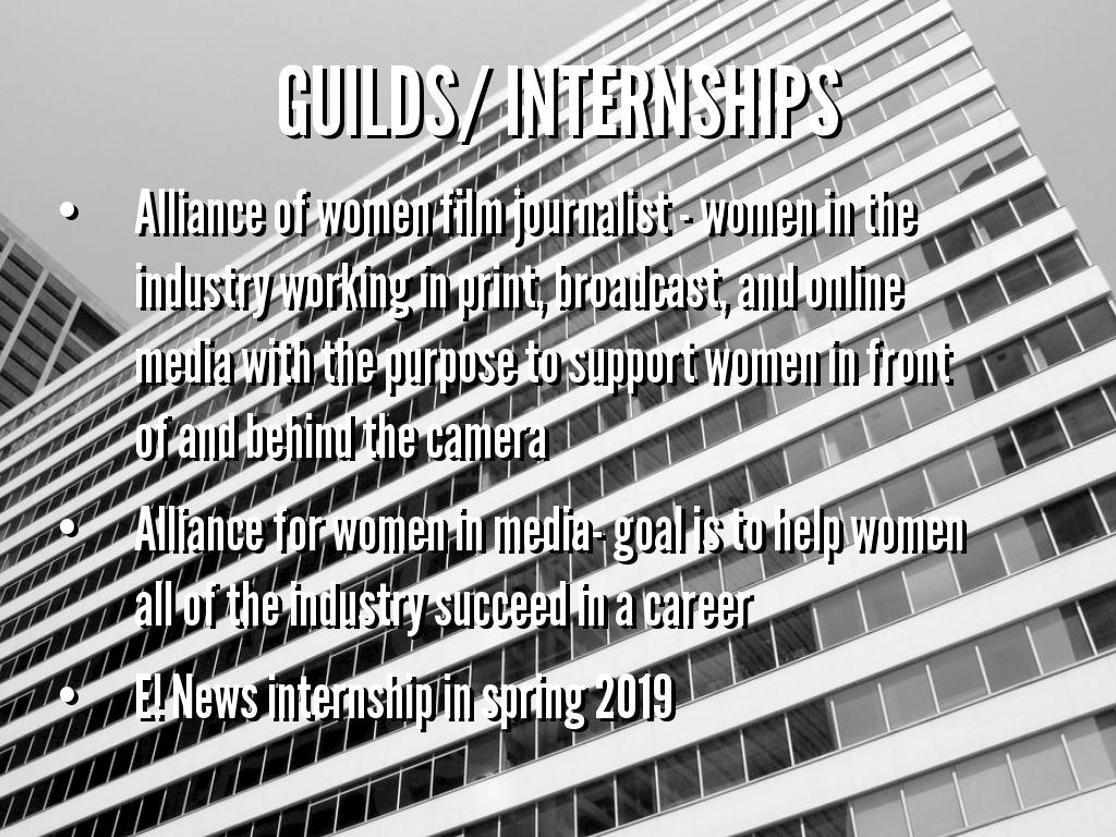 - Alliance for women in media- goal is to help women all of the industry succeed in a career