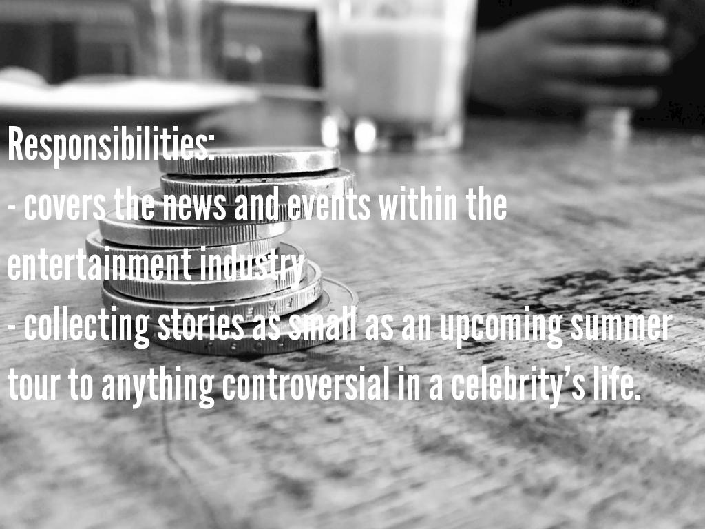 - collecting stories as small as an upcoming summer tour to anything controversial in a celebrity’s life.