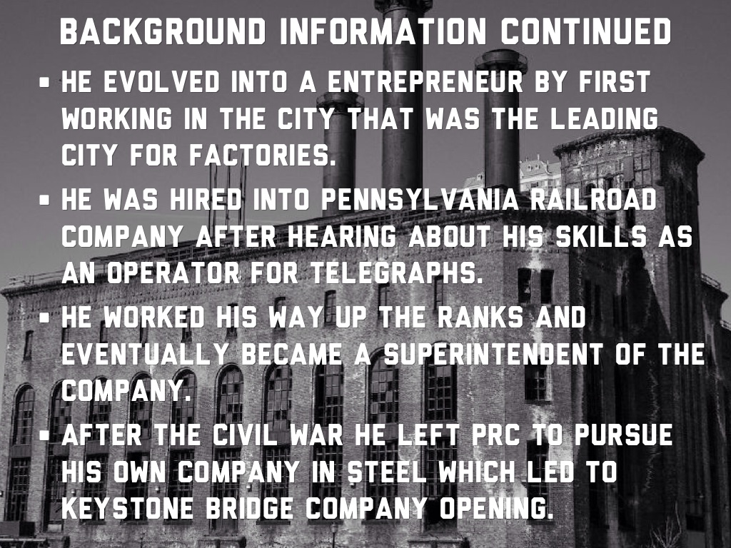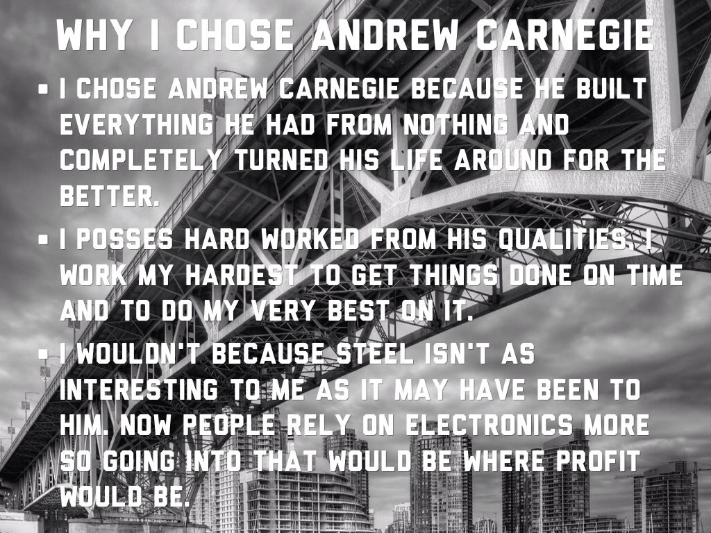 I chose Andrew Carnegie because he built everything he had from nothing and completely turned his life around for the better.