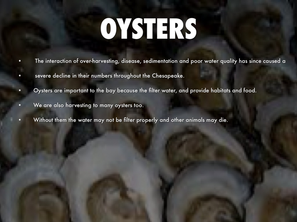 Oysters are important to the bay because the filter water, and provide habitats and food.