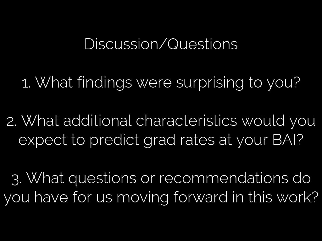 2. What additional characteristics would you expect to predict grad rates at your BAI?