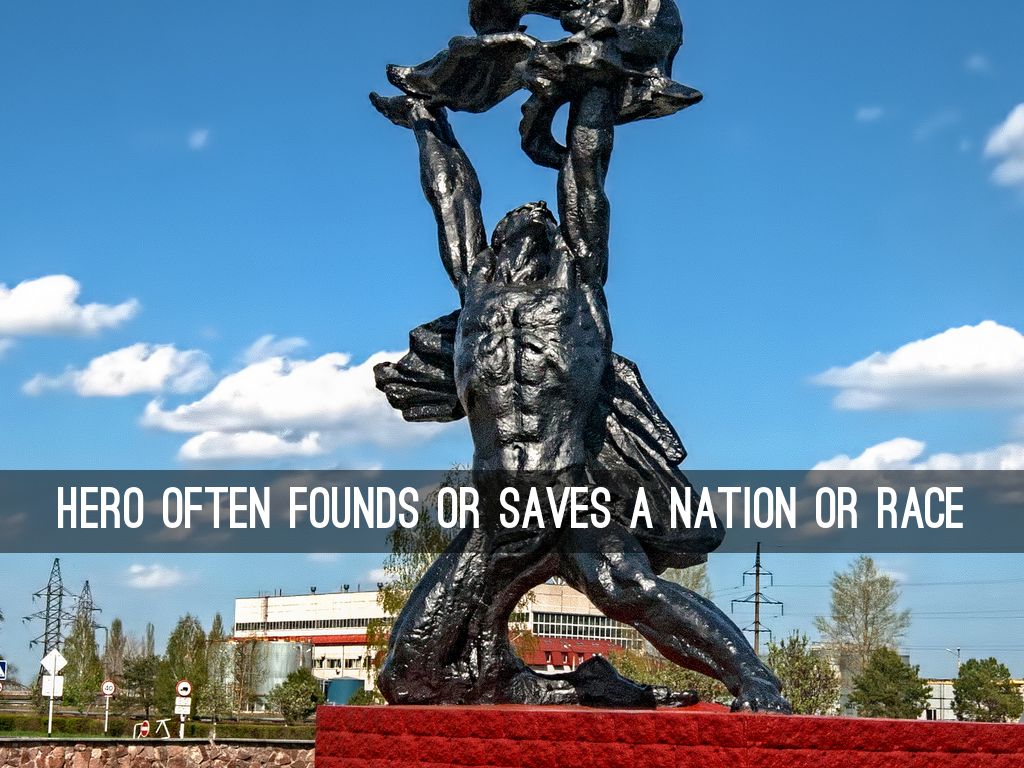 HERO OFTEN FOUNDS OR SAVES A NATION OR RACE