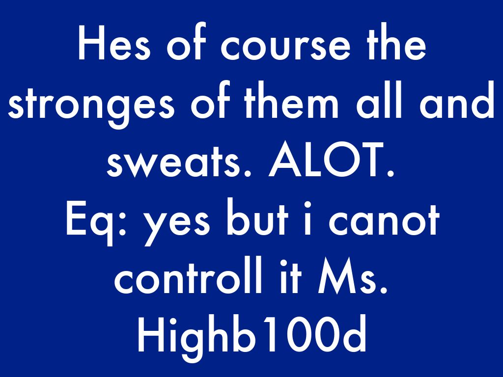 Hes of course the stronges of them all and sweats. ALOT.