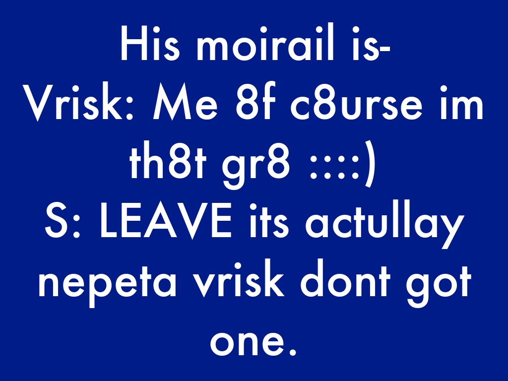 Vrisk: Me 8f c8urse im th8t gr8 ::::)