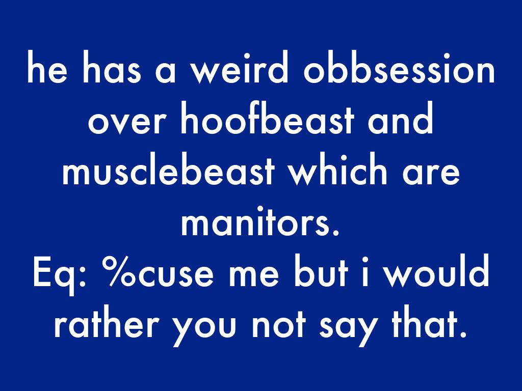 Eq: %cuse me but i would rather you not say that.