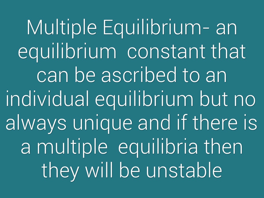 Multiple Equilibrium- an equilibrium constant that can be ascribed to an individual equilibrium but no always unique and if there is a multiple equilibria then they will be unstable