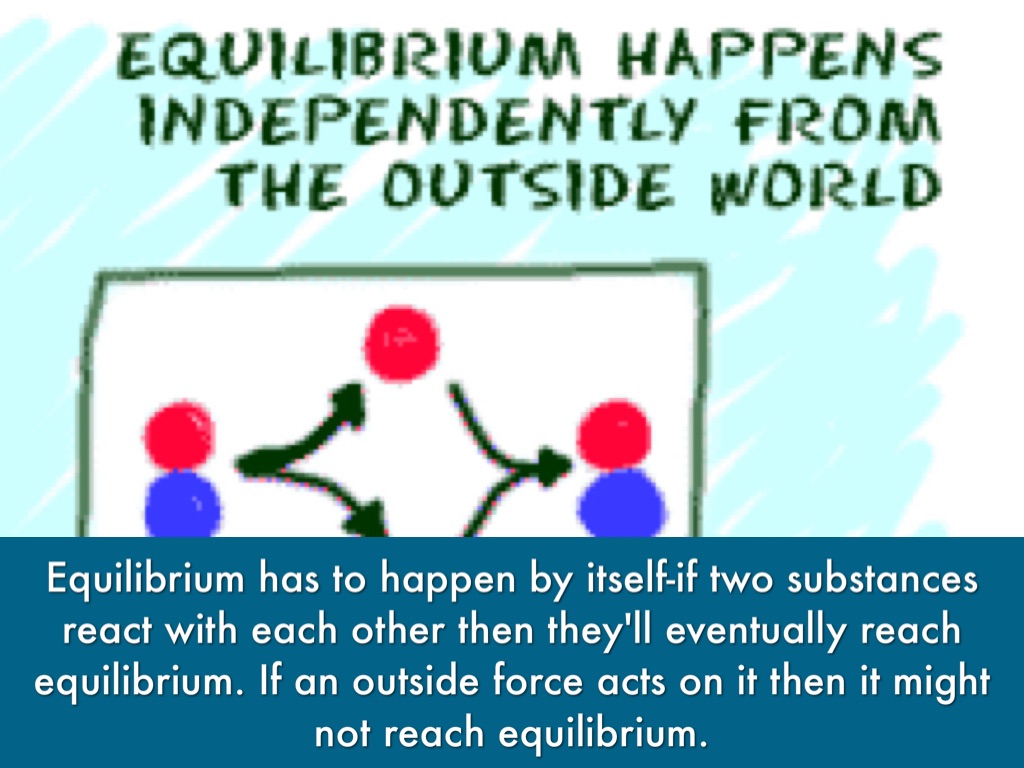 Equilibrium has to happen by itself-if two substances react with each other then they'll eventually reach equilibrium. If an outside force acts on it then it might not reach equilibrium.