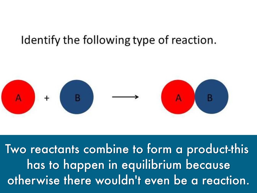 Two reactants combine to form a product-this has to happen in equilibrium because otherwise there wouldn't even be a reaction.