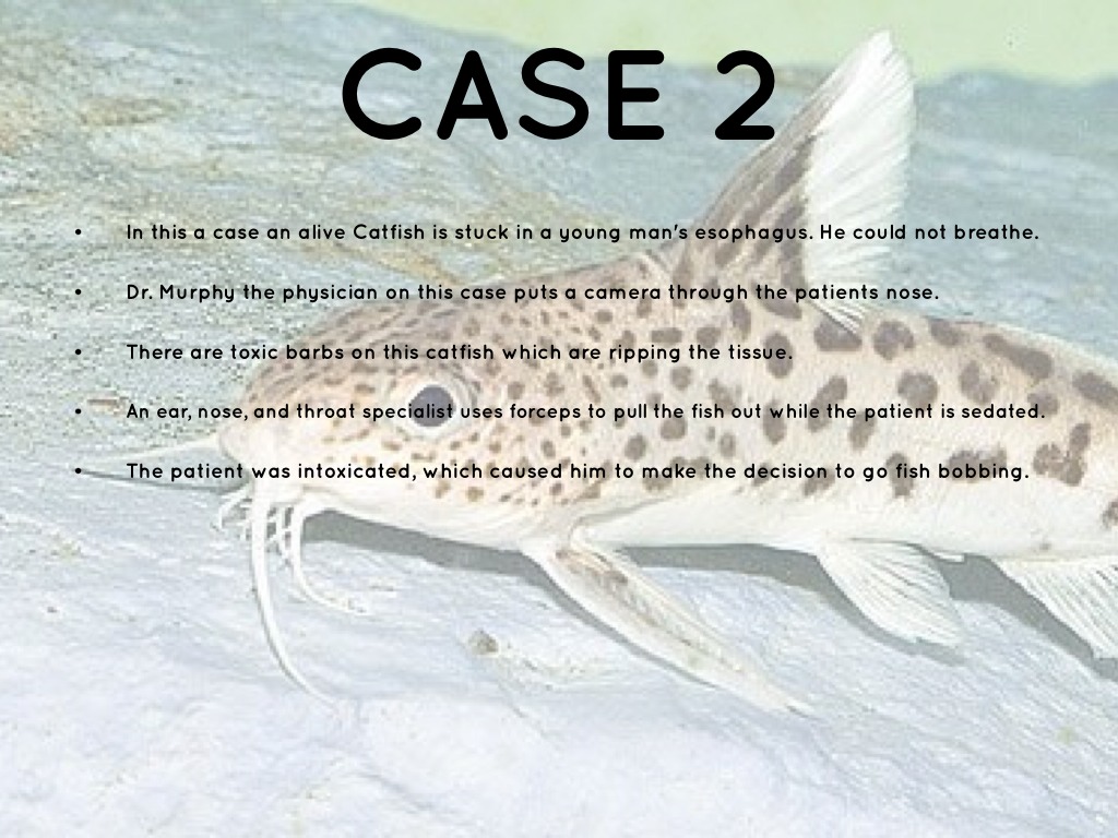 In this a case an alive Catfish is stuck in a young man's esophagus. He could not breathe.