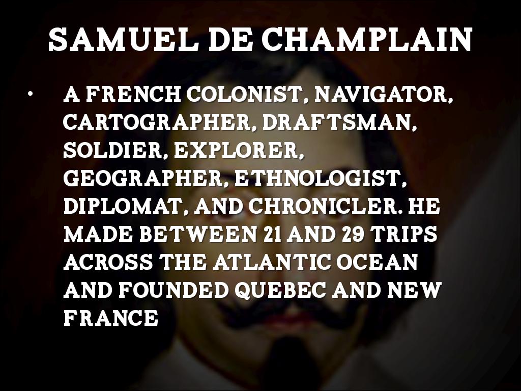 a French colonist, navigator, cartographer, draftsman, soldier, explorer, geographer, ethnologist, diplomat, and chronicler. He made between 21 and 29 trips across the Atlantic Ocean and founded Quebec and New France