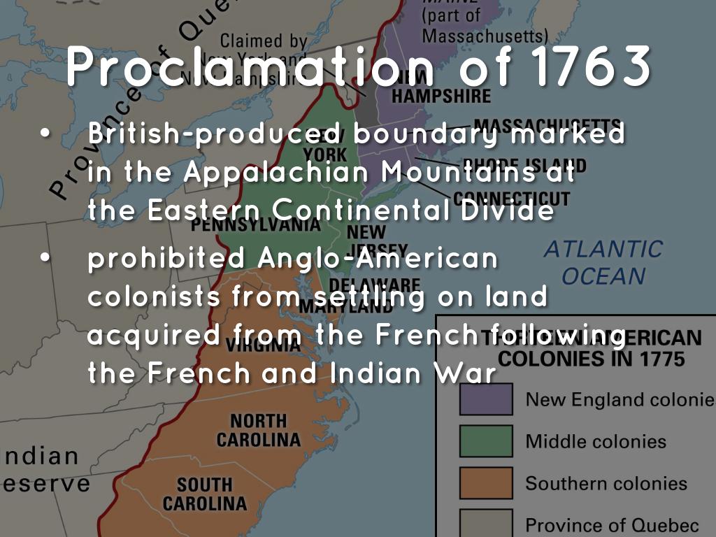 • prohibited Anglo-American colonists from settling on land acquired from the French following the French and Indian War