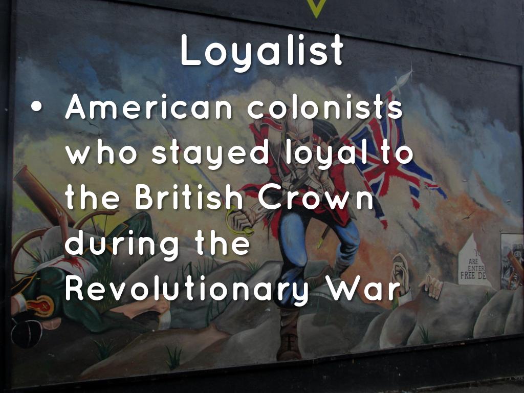 • American colonists who stayed loyal to the British Crown during the Revolutionary War