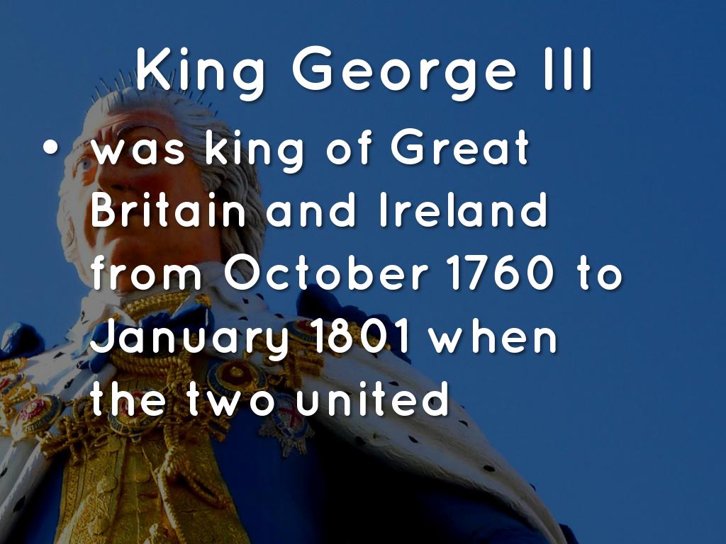 • was king of Great Britain and Ireland from October 1760 to January 1801 when the two united