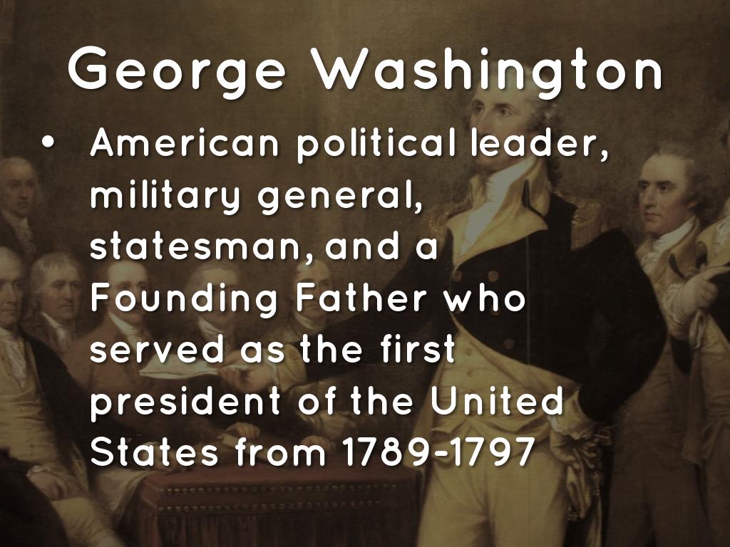 • American political leader, military general, statesman, and a Founding Father who served as the first president of the United States from 1789-1797