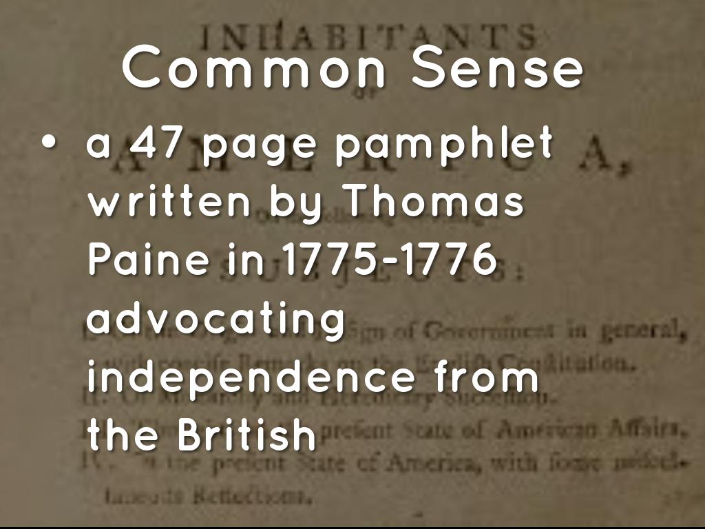 • a 47 page pamphlet written by Thomas Paine in 1775-1776 advocating independence from the British