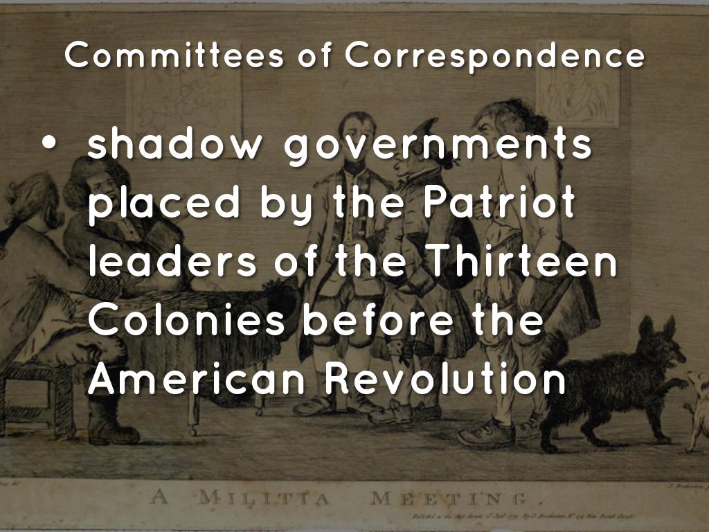 • shadow governments placed by the Patriot leaders of the Thirteen Colonies before the American Revolution