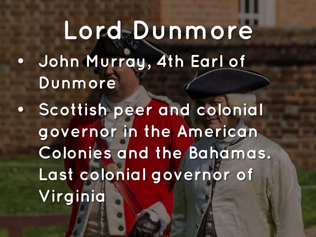 • Scottish peer and colonial governor in the American Colonies and the Bahamas. Last colonial governor of Virginia