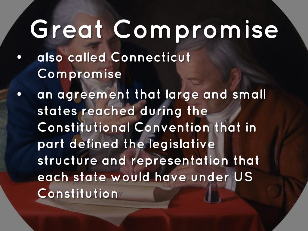 • an agreement that large and small states reached during the Constitutional Convention that in part defined the legislative structure and representation that each state would have under US Constitution