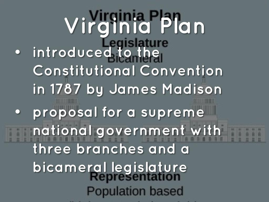 • proposal for a supreme national government with three branches and a bicameral legislature