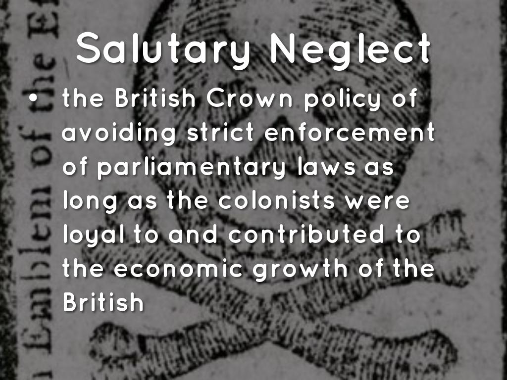 • the British Crown policy of avoiding strict enforcement of parliamentary laws as long as the colonists were loyal to and contributed to the economic growth of the British