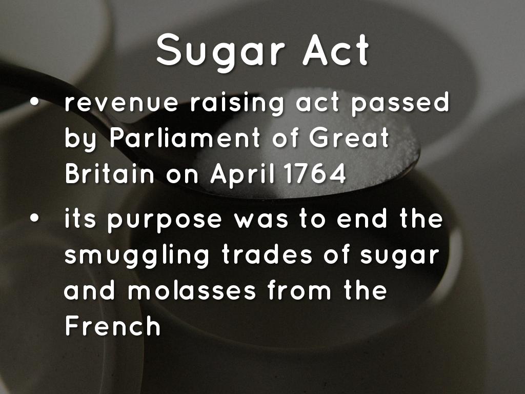 • its purpose was to end the smuggling trades of sugar and molasses from the French