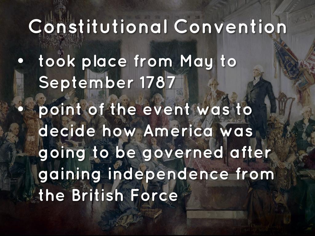 • point of the event was to decide how America was going to be governed after gaining independence from the British Force