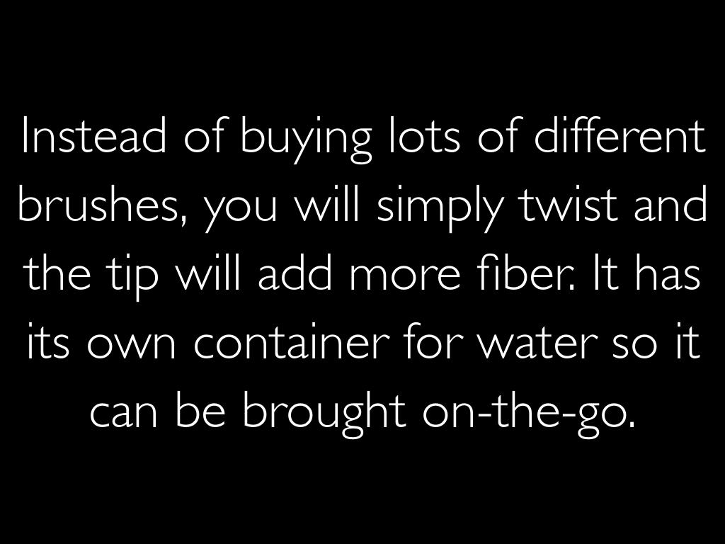Instead of buying lots of different brushes, you will simply twist and the tip will add more fiber. It has its own container for water so it can be brought on-the-go.