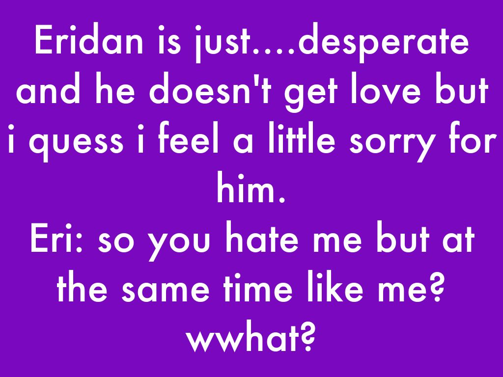 Eridan is just....desperate and he doesn't get love but i quess i feel a little sorry for him.