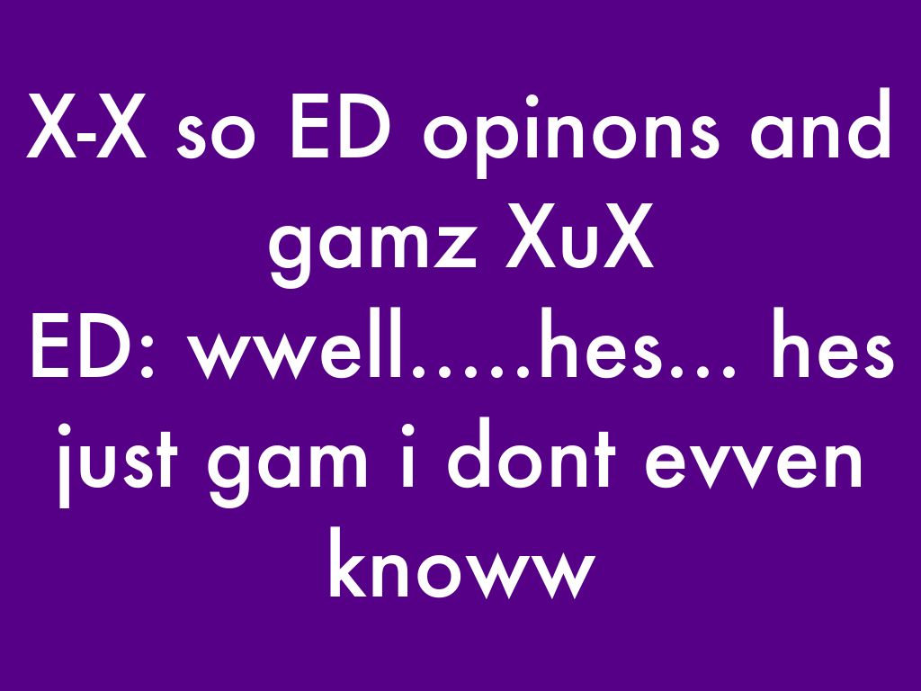 ED: wwell.....hes... hes just gam i dont evven knoww