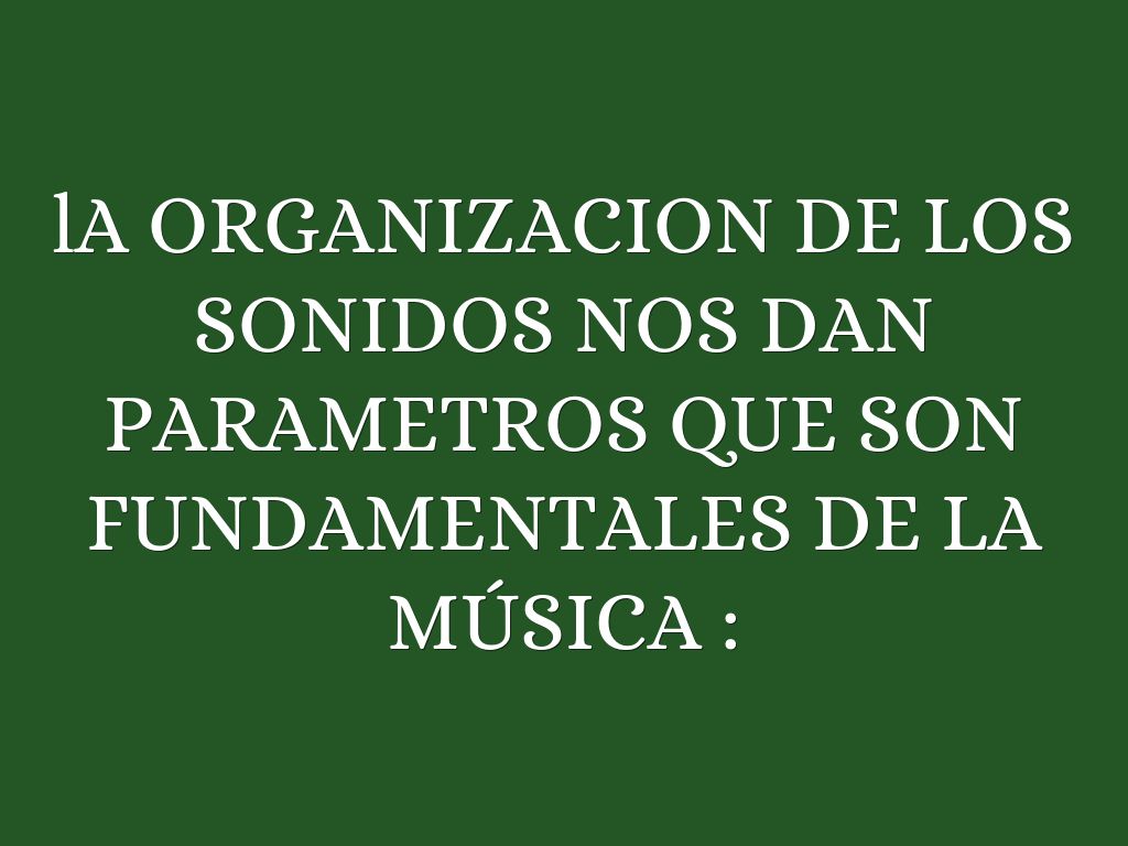 lA ORGANIZACION DE LOS SONIDOS NOS DAN PARAMETROS QUE SON FUNDAMENTALES DE LA MÚSICA :